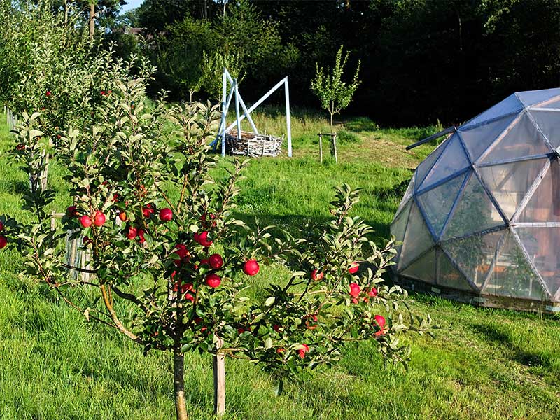 Das Künstlerpaar Catharina und Dieter Wagner hatte diesen Workshop gestaltet und sich dazu eine Installation überlegt, die thematisch einen Gegenpol zu ihrer Kunstwerk im Außenraum des DA, Kunsthaus selbst darstellt. Zugleich nimmt es formal Bezug zu dem am Lehrgarten stehenden „Geodome“, welches vor einigen Jahren ebenfalls ein Kunstwerk am DA, Kunsthaus Kloster Gravenhorst war und seinerzeit auch Pflanzen beherbergte.
