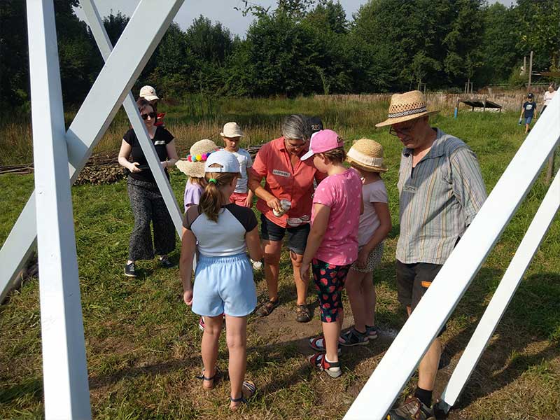 Für umfassende Betreuung gerade auch an diesem heißen Sommertag war indes gesorgt. Neben kühlen Getränken war für den Mittag ein Imbiss vorbereitet und zusammen mit dem Künstlerpaar kümmerten sich vier weitere Personen von DA und WiesenWunder den Tag über um die jungen Gäste.